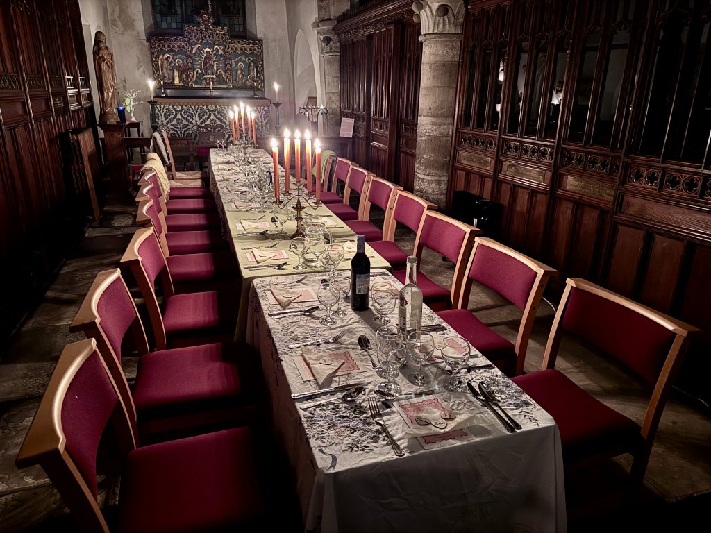 Our second and very successful Supper Club featured Saint Valentine on his feast day, with an appropriately Italian menu skilfully produced by Chef Aïcha and her conscripted dedicated team of helpers. News of the next Supper with the Saints will be publicised on our social media feeds, our weekly email newsletter, and here. As you can see from the photo below places are limited by the space available so please contact the Parish Office at sa************@***il.com to register your interest in advance, or book once the date of the next supper is announced. All profits from these events go to the work of the Parish.